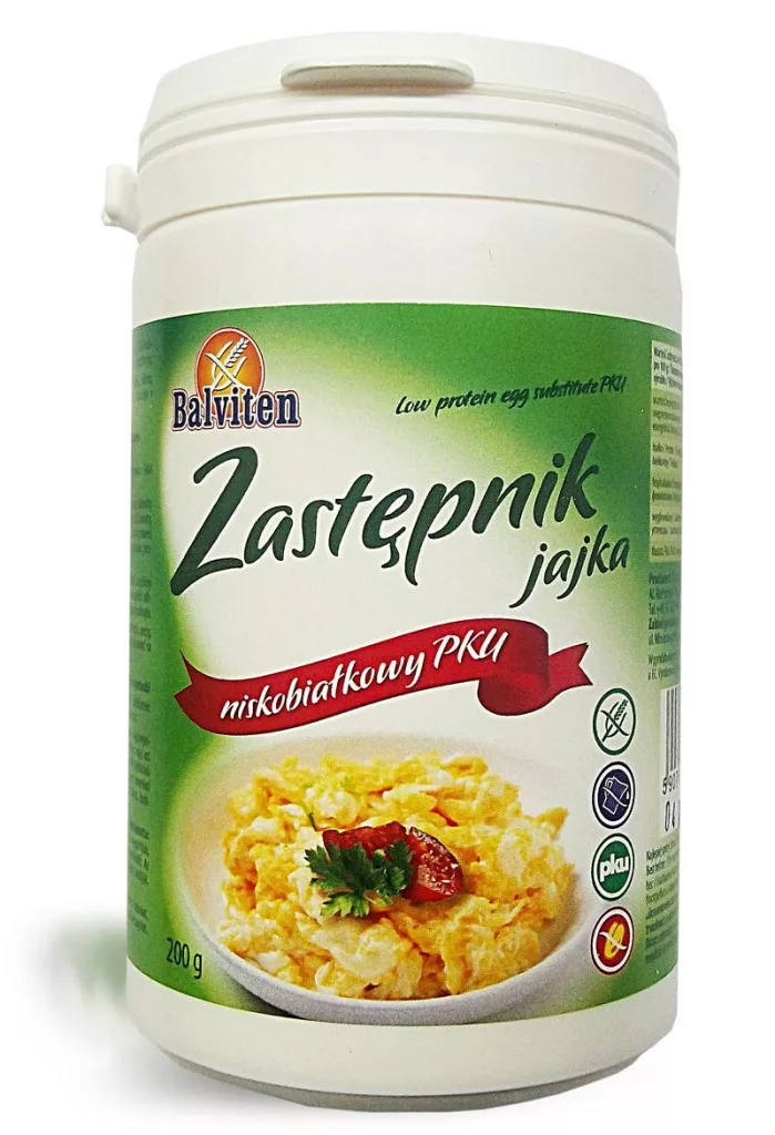 Balviten tojáshelyettesítő por pku 200g. Laktózmentes, gluténmentes, tojásmentes, tejmentes, fehérjeszegény. Összetevők: kukoricakeményítő, sűrítőanyag: E464 és E461, színezék: béta-karotin.