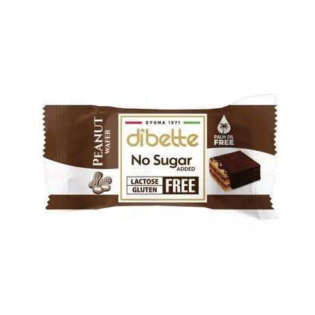 Dibette nas laktóz-, pálma-, gluténmentes földimogyorós krémmel töltött ostyakocka, hcn, édesítőszerekkel 10 g