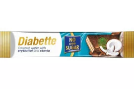 Diabette kókuszos krémmel töltött ostya szelet, kakaós tejbevonó masszával mártva 26g termékünk a következő diétákban fogyasztható: cukorbeteg, low-carb, vegetáriánus.