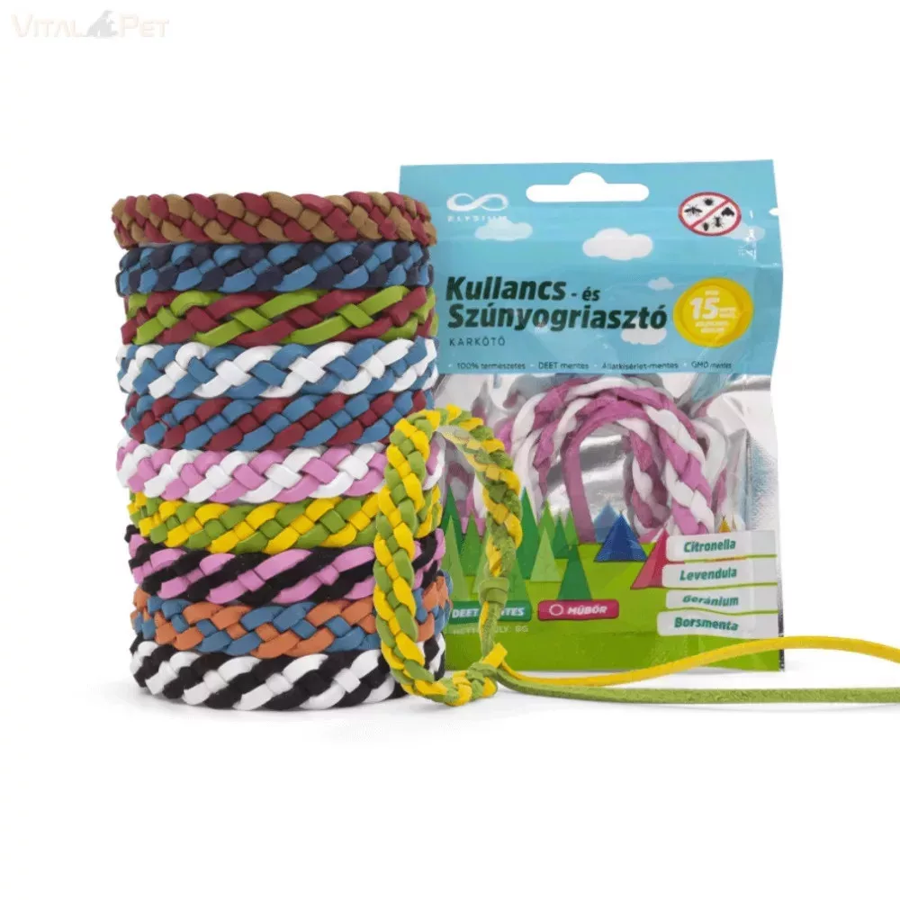 Az Elysium műbőrből készült kullancs- és szúnyogriasztó karkötője 100%-ban természetes illóolajokkal impregnált, így az megfelelő védelmet biztosít a kullancs-, szúnyog-, tetű-, légy-, valamint hangyacsípés ellen. A megfelelően tárolt karkötő akár 350 órán keresztül képes távol tartani a nemkívánatos rovarokat.