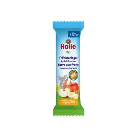 A Holle bio gyümölcsszelet alma-banán ideális snack két étkezés között. Praktikus méretének köszönhetően még a legkisebbek számára is egyszerű és biztos fogást tesz lehetővé. A szelet teljes kiőrléső tönköly ostyával van körbevéve, így a szelet egyszerűen fogható, és gyermeke keze nem lesz ragacsos.
