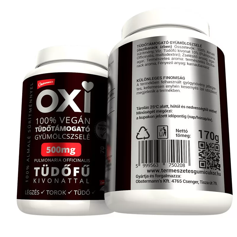 OXI Tüdőtámogató Gyümölcszselé 500mg Pulmonaria Officinalis (Orvosi Tüdőfű gyógynövény) kivonattal
