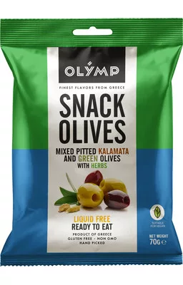 Olymp snack fűszerezett zöld és kalamata magozott olajbogyó 70 g