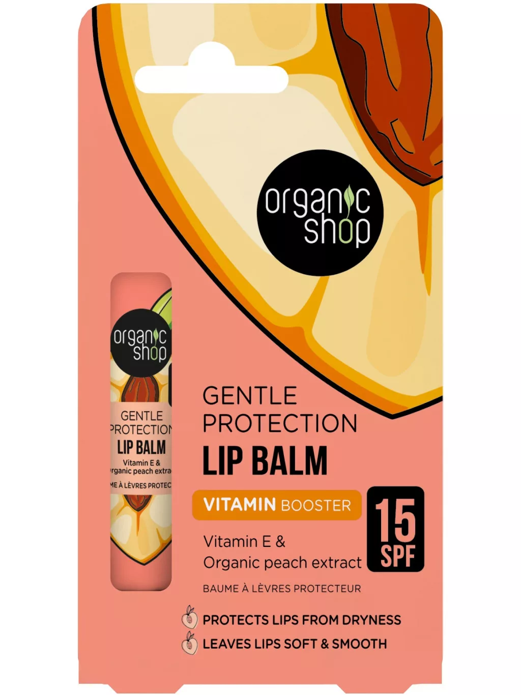 Organic Shop bio ajakbalzsam vitamin booster e-vitaminnal és barackkivonattal spf15 10 ml